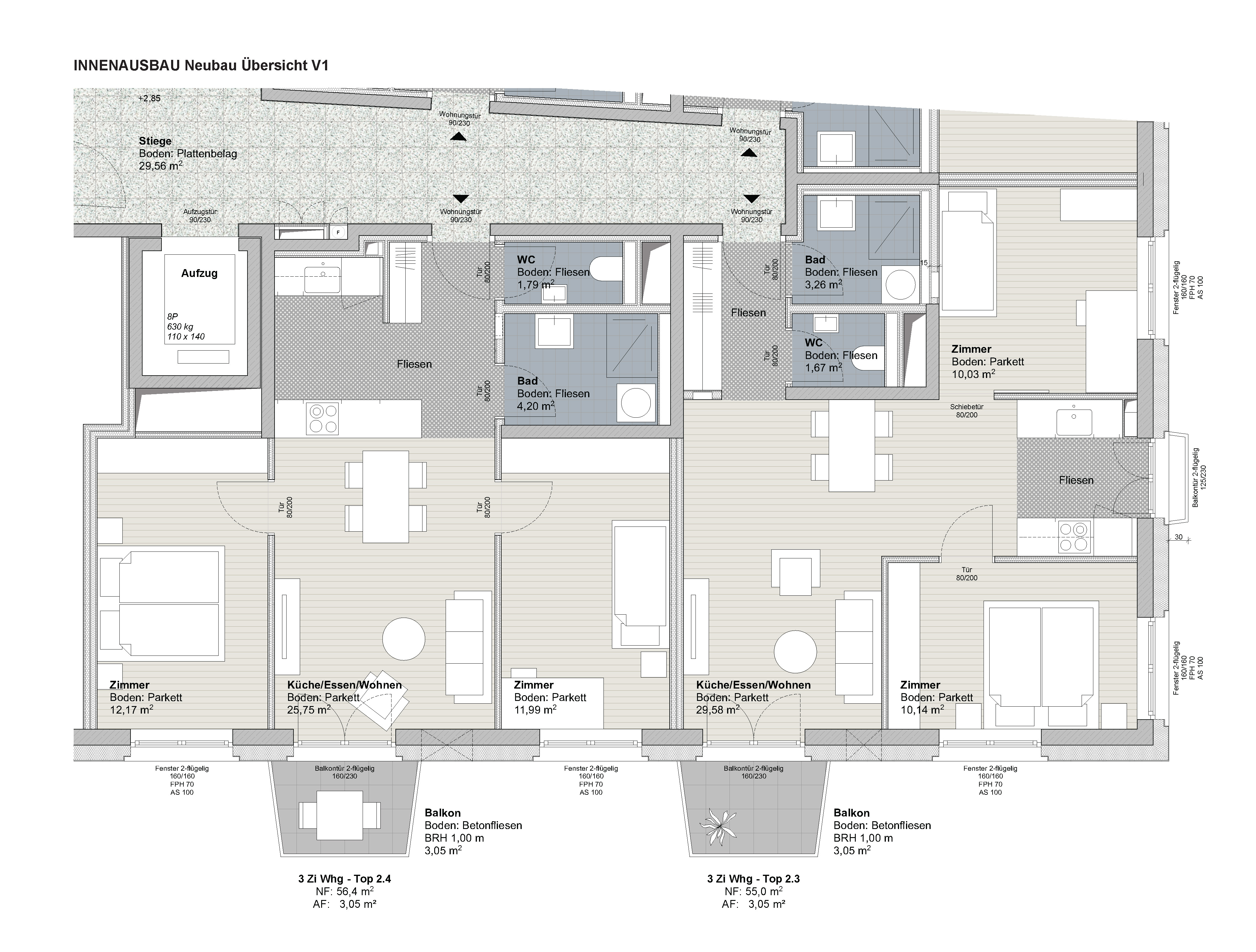 Beispielgrundrisse Drei-Zimmer-Wohnungen (Neubau)